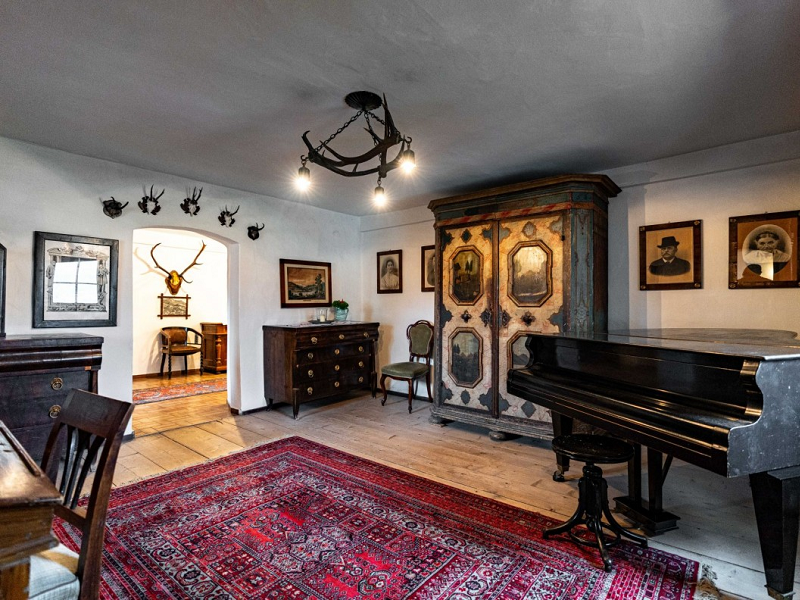 This building, dating from 1554, still exists today as the northern wing of the overall complex. Christoph Weitmoser died in 1558 – by then, mining in Gastein had already passed its peak. Thus, in 1604, the castle was sold to the industrialist Georg Leykofer, who added the newly built Stöckl, or front part of the castle, with its two rounded bay windows on the eastern corners. The altar of the castle chapel was consecrated in 1628, after Leykofer, a Protestant, had emigrated and the property had passed to Alexander Hölzl von Sylion in 1626. From the first quarter of theThe frescoes in the chapel, depicting biblical scenes, date from the 17th century and were painted by Ludwig Lindner. The room now wrongly called the Weitmoserstube, with its beautiful paneling and coffered ceiling, also dates from the same period. In 1634, Johann Riept, the parish priest of Haus and Schladming, purchased the castle, but his main heir, Franz Khuminger, died in 1691. The property then passed to Johann Pichler in 1701, to Georg Stuchner in 1712, and to Franz Benedikt Hasler in 1738. In 1752, the Scharfetter family acquired the estate, including the farmland, and has owned it ever since.