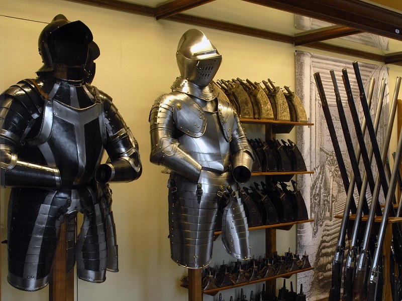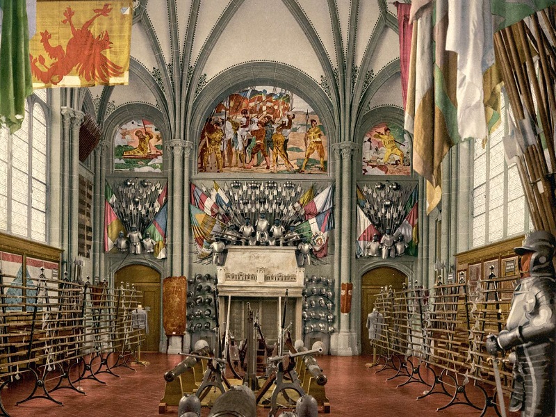 После нескольких небольших залов огромный оружейный зал на 700 квадратных метров и высотой 16 метров стал концом и одновременно главной достопримечательностью Государственного музея. Архитектура имитировала неоготический собор и была переполнена доспехами, флагами, трофеями и оружием от предполагаемого « величайшее политическое время Конфедерации »в 15 и 16 веках. В настоящем зале славы нации захваченному посетителю должны быть показаны великие времена его маленькой страны.
